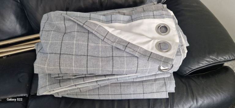 Heavy weight Fully lined eyelet Silver grey curtains with black and white check 90wx90 drop 2 pairs