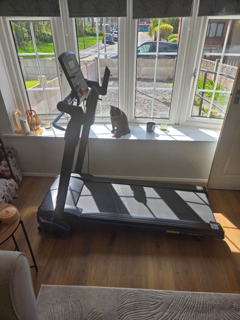 Very good used condition Rodger black fitness running machine. No longer need. It is foldable with wheels to easily stand up and put away for storage. 157x71cm. Has incline settings, very sturdy and heavy. Has some slight scuffs from putting away int