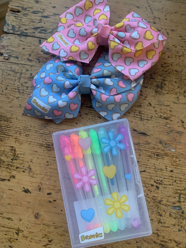 Brownies - pens and hair bows set - £5